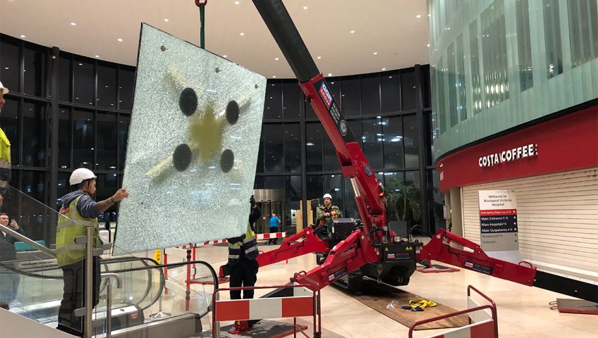 23rd December 2019 By admin News 0 Comments Hospital Lift In 2019 Blackpool & Fylde Glass replaced specialised glass panels to lift shaft at Blackpool Victoria Hospital Main Entrance.